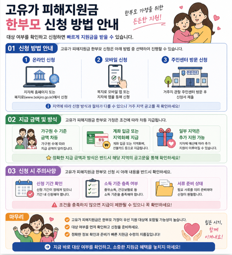 특히 고유가 피해지원금 한부모 가정의 경우 우선 지원 대상에 포함되는 경우가 많아 꼭 확인이 필요합니다.