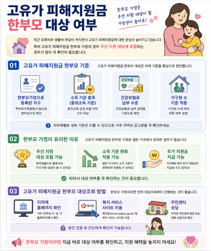 고유가 피해지원금 한부모 대상은 아래 기준을 중심으로 판단됩니다.